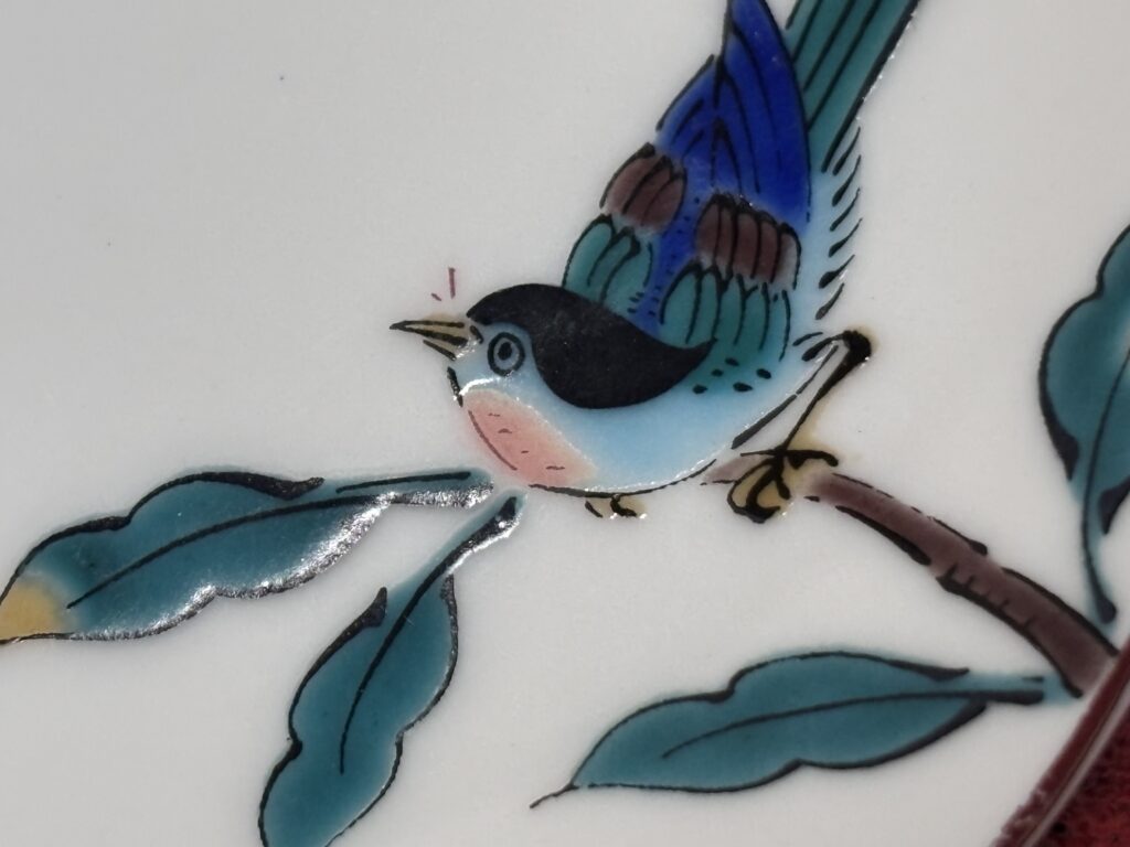 ↑私物の青郊窯の小皿。量産品特有のインクの斑点、ボロが出やすい赤の違和感も見られない。このクオリティで新品価格は1,500円もしない。同レベルの手書きなら5,000円を超えてもおかしくない作品だ。