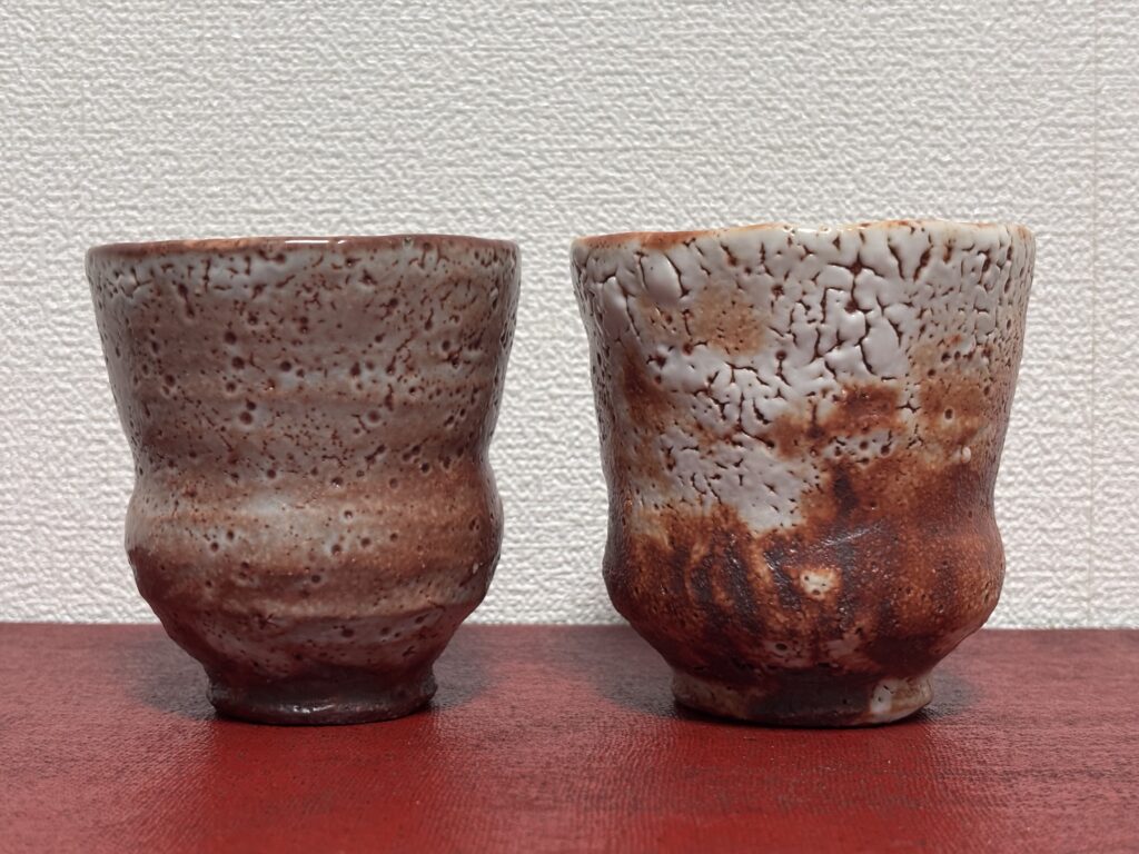 ↑同じ作家の湯呑。どちらも同じ日に購入したため、制作時期…つまり作風よるに大きな差異はないと思われる。個体差というのはここまで大きく表れることも。