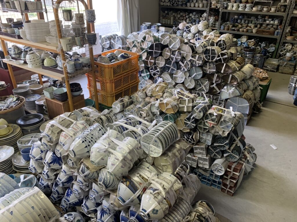 ↑瀬戸焼の生産量を物語る山積みの売り場。冷静に見ると下の食器が重みで割れていないのが凄い。それだけ丈夫ということか。ちなみにこの光景は令和に撮影したものである。